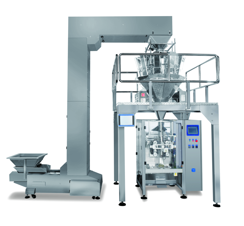 المصعد → 10*1.6L آلة الترجيح ← منصة العمل ← معدات التعبئة الرأسية KL-420