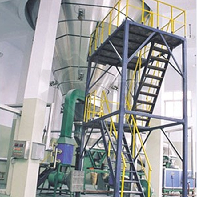 برج الرش: يتم رش المستحلب المركّز في قطرات ناعمة من خلال نظام الرش ، ويتم تبخير الماء بسرعة بواسطة الهواء الساخن لتشكيل مسحوق الحليب.
