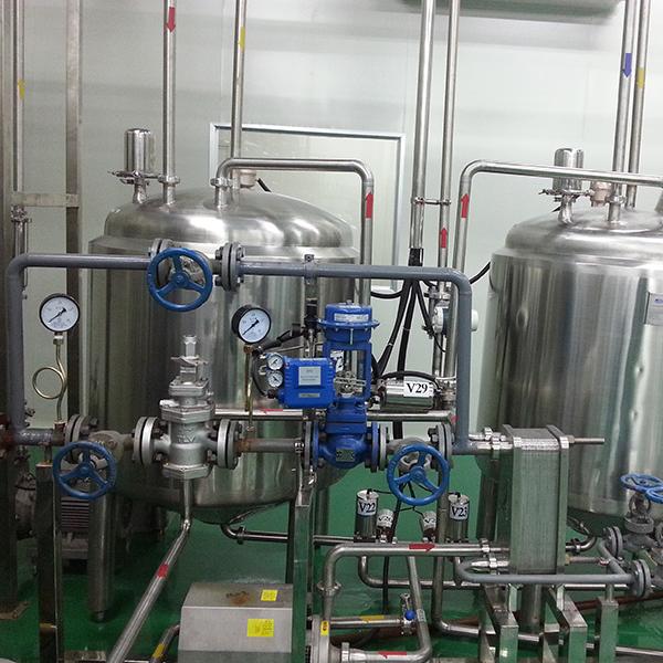 إعادة التدوير والتحكم: تقوم المضخة الصحية بتشغيل حلقة مغلقة؛ يقوم التحكم PID بتعديل الطاقة البخارية/الكهربائية عبر صمامات التحكم/SSR للحفاظ على درجة الحرارة.