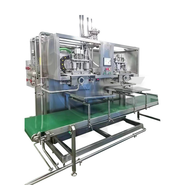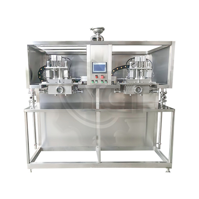 جميع العمليات في حشو الأكياس المعقمة ، بما في ذلك حقيبة المشبك ، غطاء المشبك ، غطاء السحب ، غطاء المسمار ، رفع غرفة التعبئة ، رفع صمام ملء ، إلخ ، كلها في ظرف من المعقمة ، للتأكد من أن مواد التعبئة والمواد المنتج في حالة تعقيم.